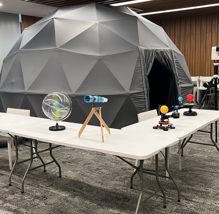 We are thrilled to share the wonderful experience we had at King's College International School Bangkok, where we set up our first mobile planetarium. This event was meticulously designed to educate and engage students about the fascinating world of astronomy, particularly focusing on the intricate relationship of the sun, Earth, and moon system. The turnout was beyond our expectations, captivating not only the students but also teachers and school staff, creating a vibrant atmosphere of learning and exploration.
